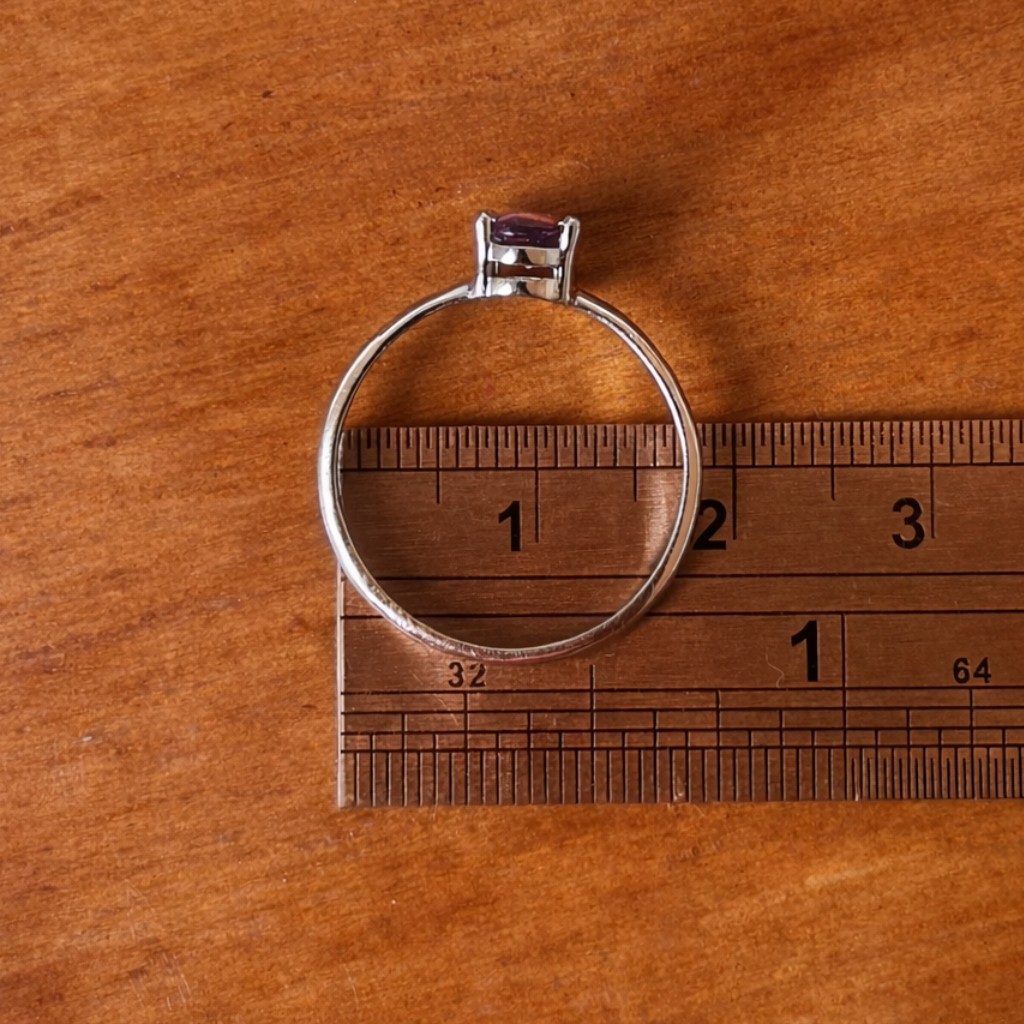 Se conseguir pegar um desses anéis por alguns minutos, você pode medir o diâmetro interno com uma régua (de uma borda interna à outra, passando pelo centro do anel) e depois comparar essa medida com uma tabela de tamanhos de aro. Outra opção é usar o app Ring Size, que faz essa conversão automaticamente.